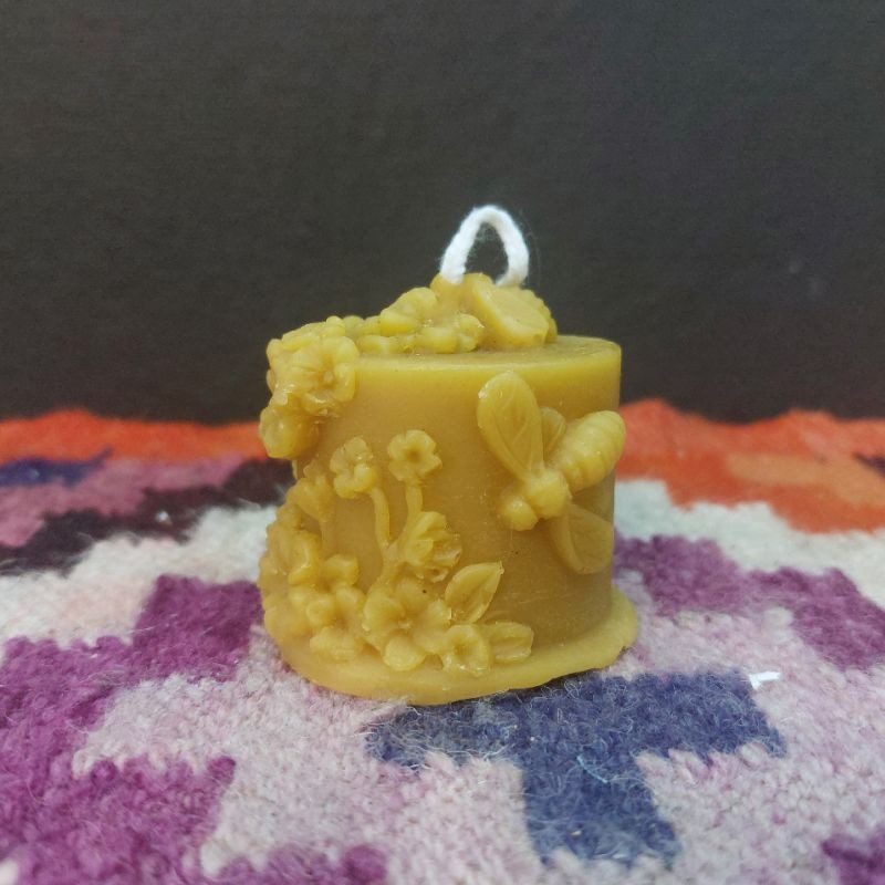 Découvrez cette bougie en cire d'abeille naturelle, fleurie avec des butineuses, ajoutant une touche réaliste. Parfaite pour apporter une ambiance chaleureuse et naturelle.