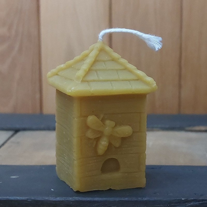 Découvrez cette bougie en cire d'abeille naturelle, ruche carrée.